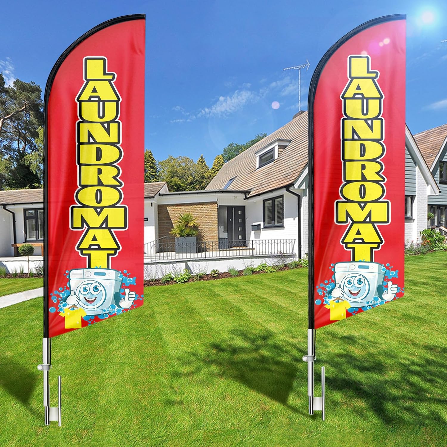- 【Great Eye Catcher】Our Laundromat Feather Flags will be very eye catching for indoor and outdoor use and make your location or events stand out, the flying feather banner with vibrant colors will grab attention at a distance to attract many new customers to your store.
