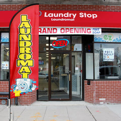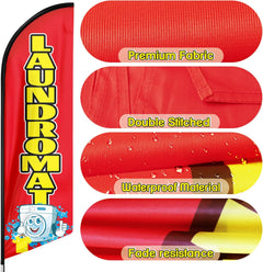 Laundromat Signs-8ft Red Laundromat Feather Flag Pole Kit for Laundromat Business(Flagpole Not Included)