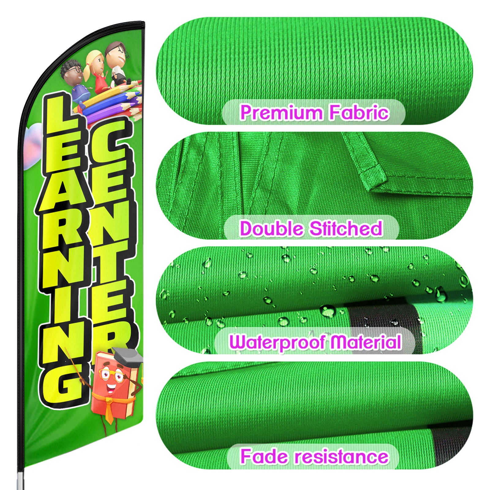 - 🏠【Great Eye Catcher】Our learning Center Swooper Flag will be very eye catching for indoor and outdoor use and make your location or events stand out, the flying feather banner with vibrant colors will grab attention at a distance to attract many new customers to your store.