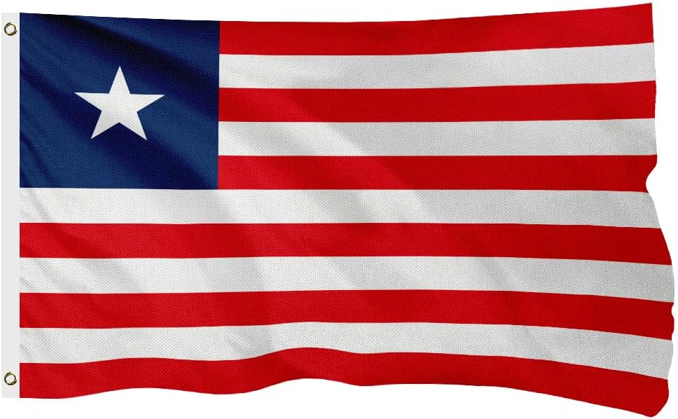 Liberia Liberian Flag for Outside, 400D Heavy Duty Polyester, Double-Sided Printing, Quadruple Stitched Fly Hem, Fade Resistant, 2 Brass Grommets