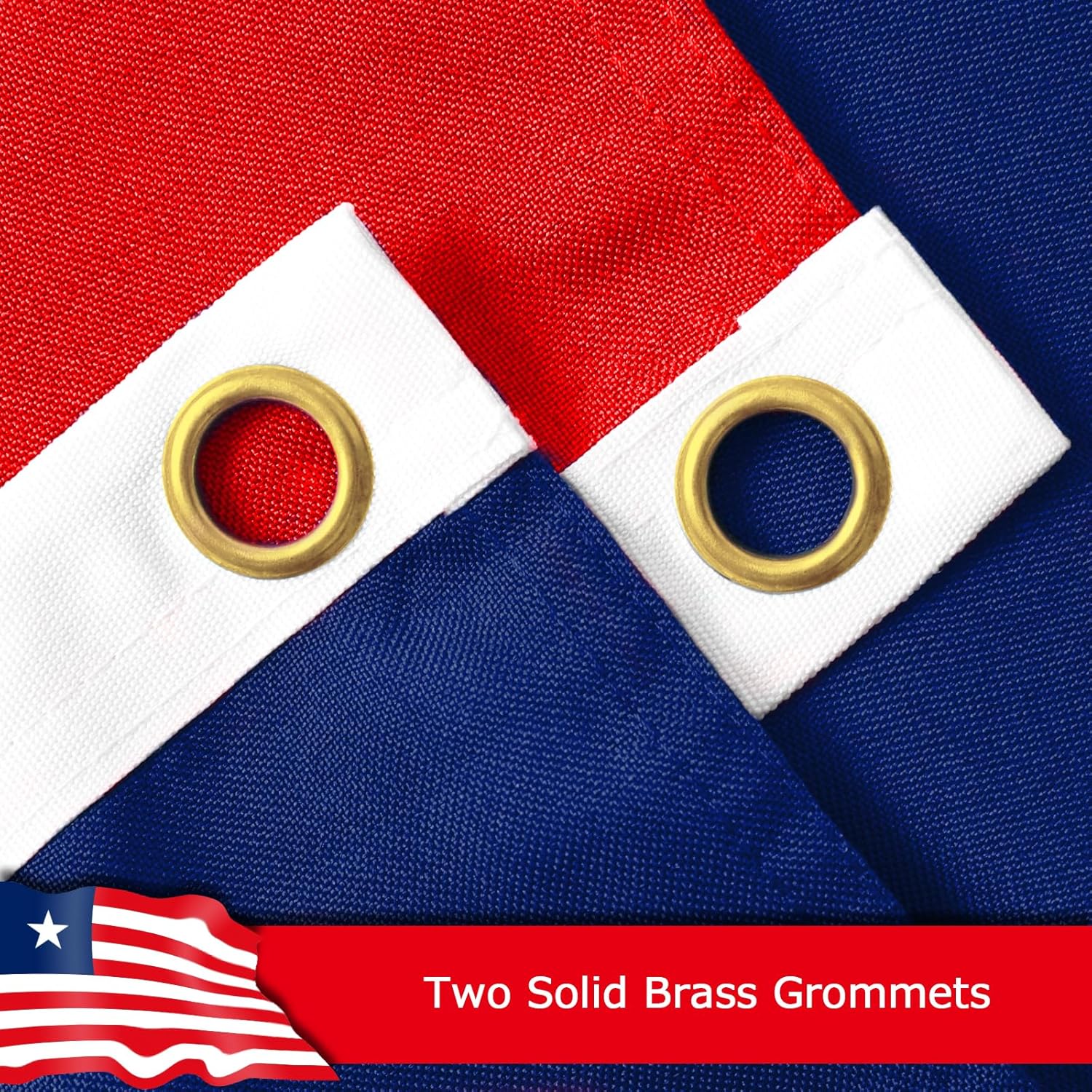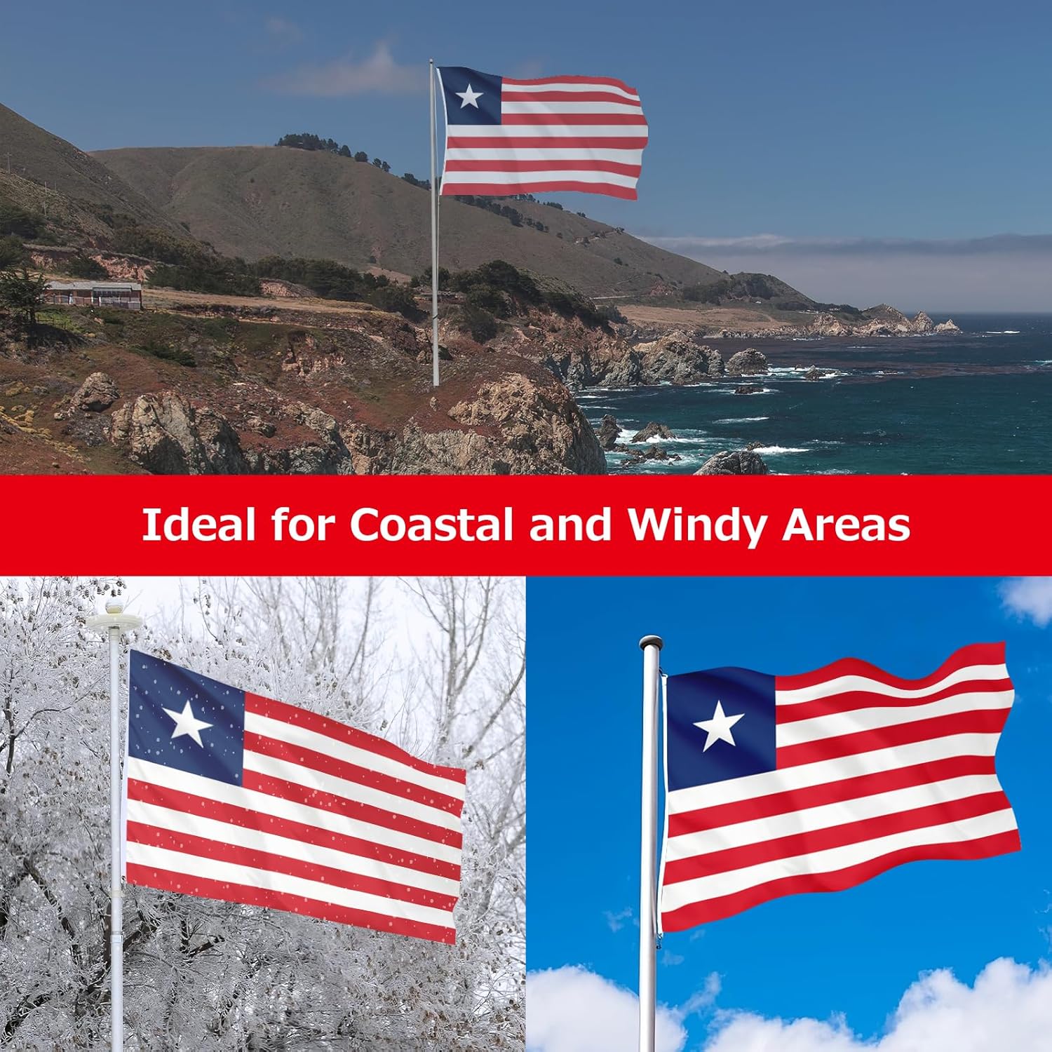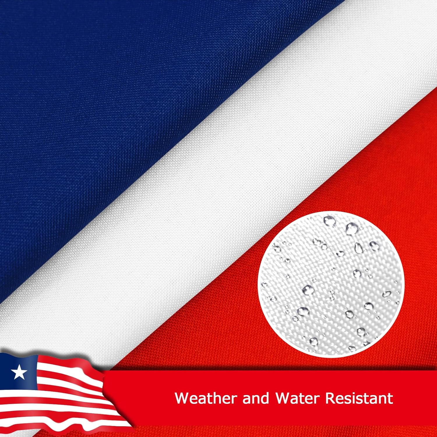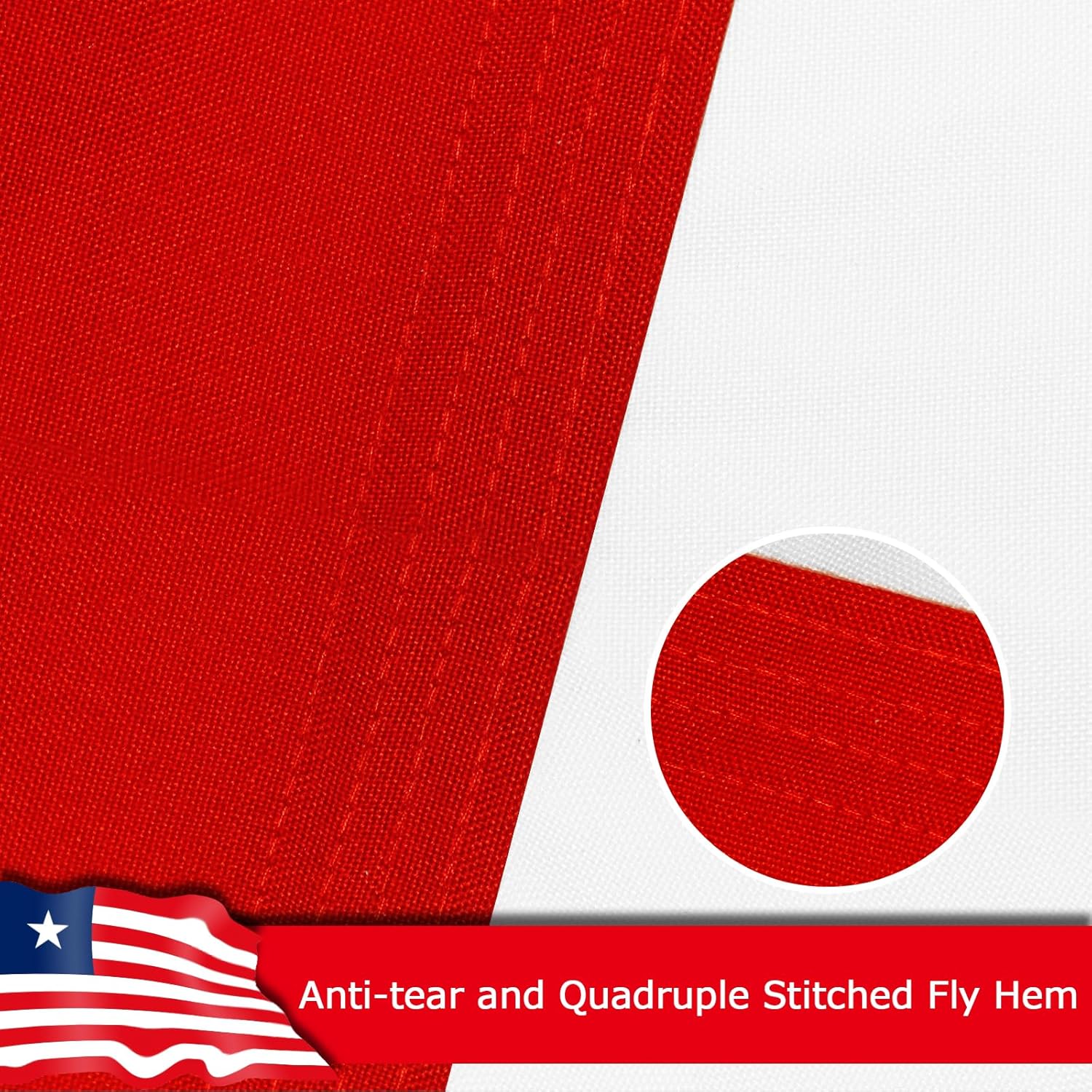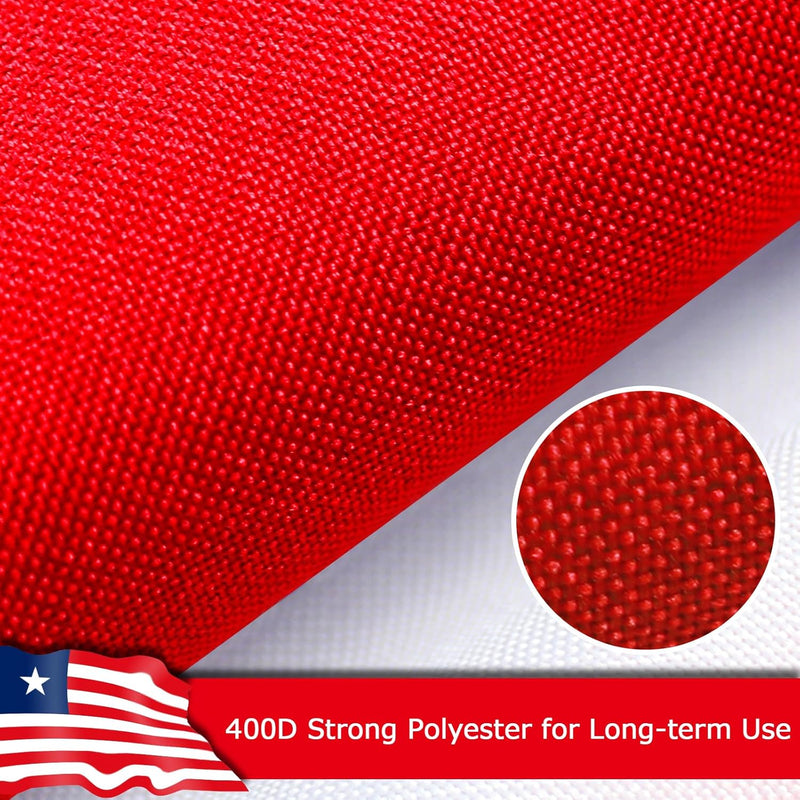 - 【400D Heavy-Duty Anti-Tear Flag】Crafted from premium 400D polyester, this flag is thicker, heavier, and more durable than standard flags. It’s waterproof, UV-resistant, and features a smooth, deluxe finish. The fly end is reinforced with a canvas header and four rows of lock stitching, providing exceptional resistance to fraying and tearing—perfect for coastal or high-wind areas.