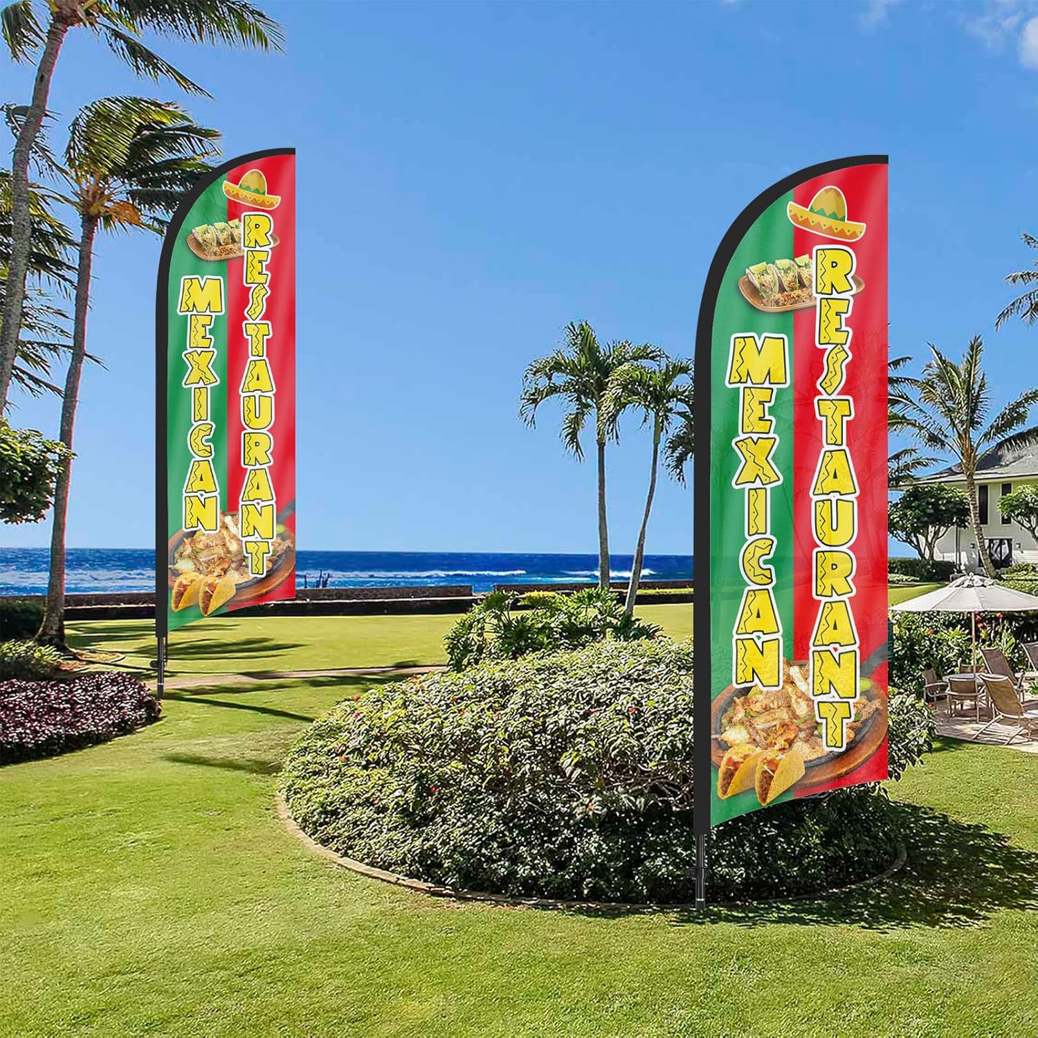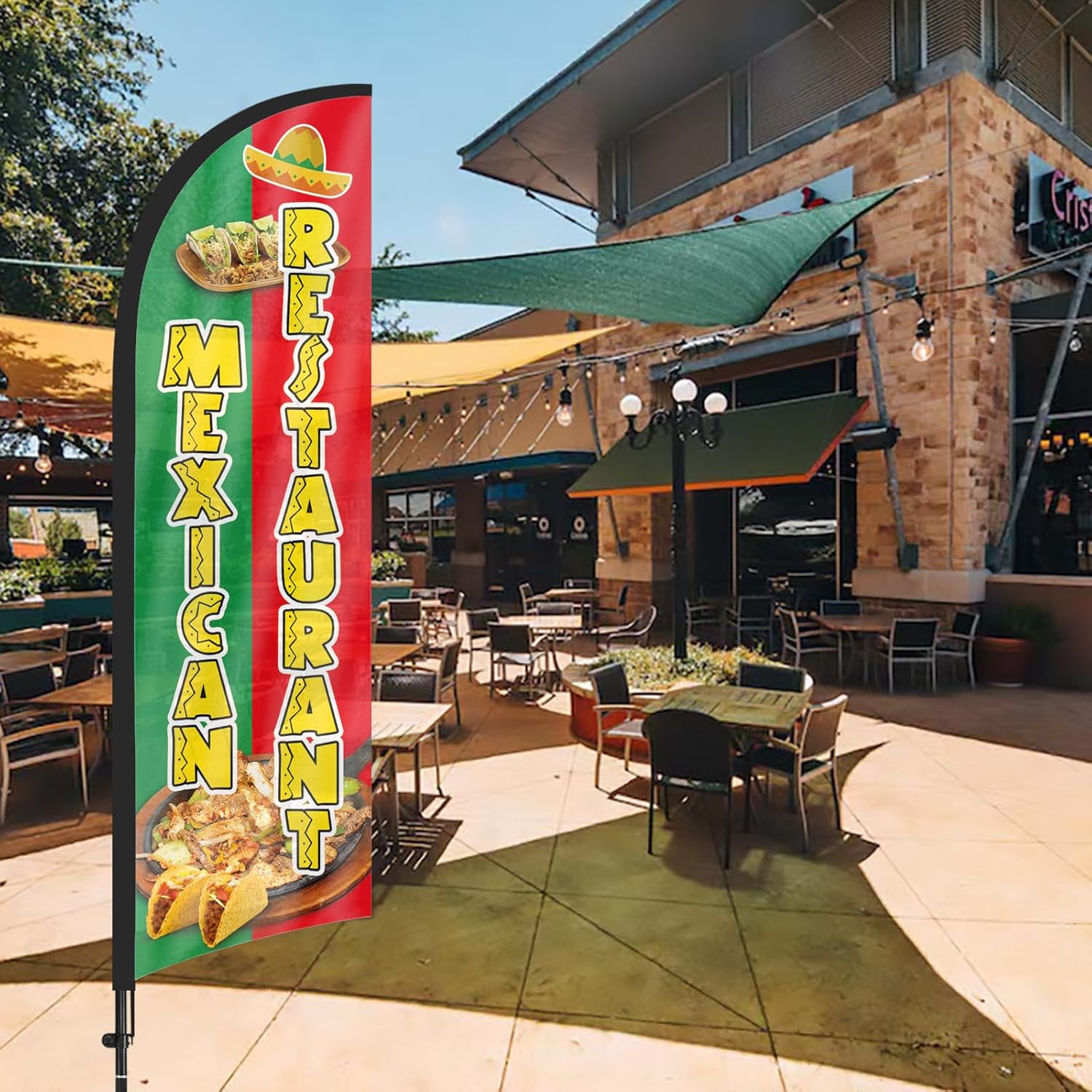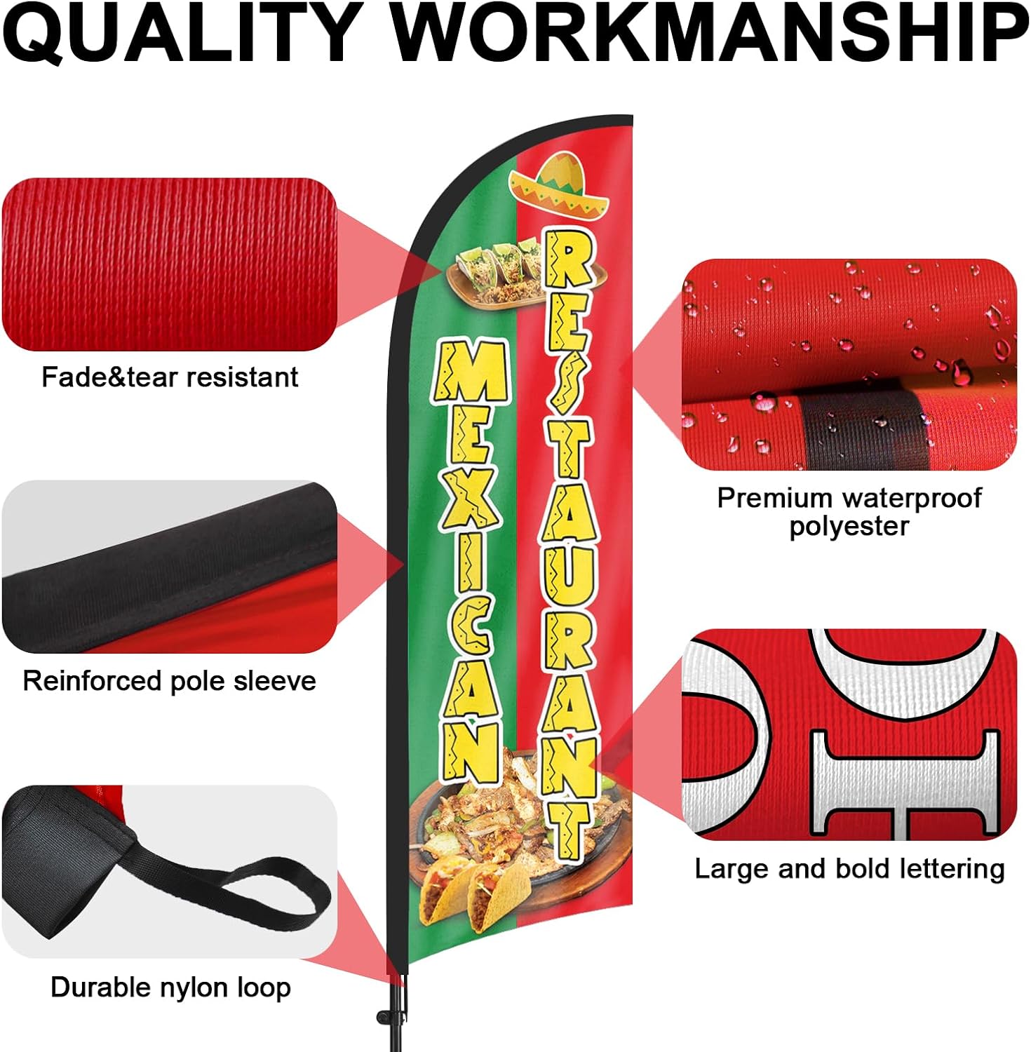 - 【Weather Resistance】These Mexican Restaurant feather flags are designed to withstand various weather conditions, high-quality aluminum and fiberglass pole, tear resistant polyester fabric making it sturdy and heavy-duty to be held up well even in rain, snow, sleet and strong winds.