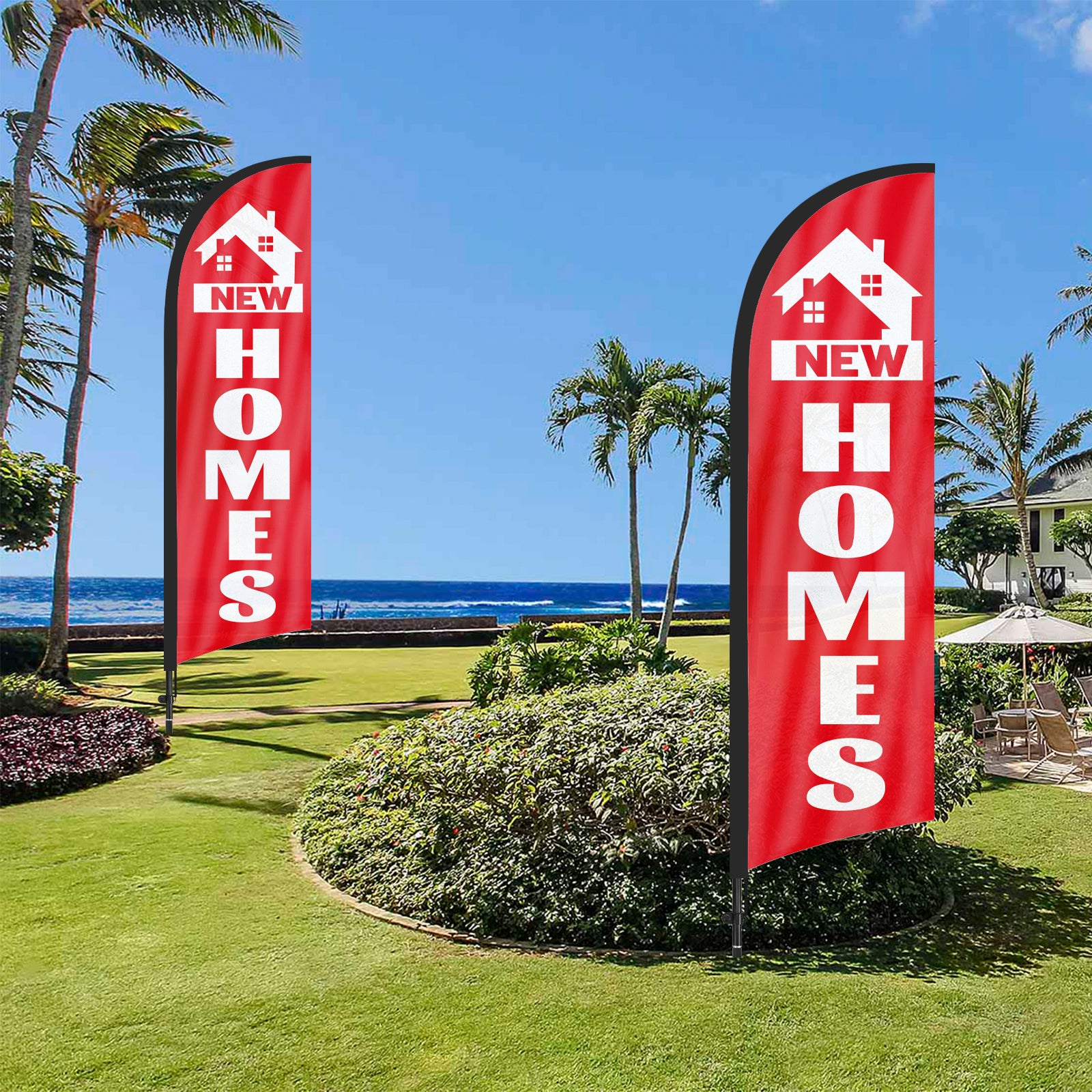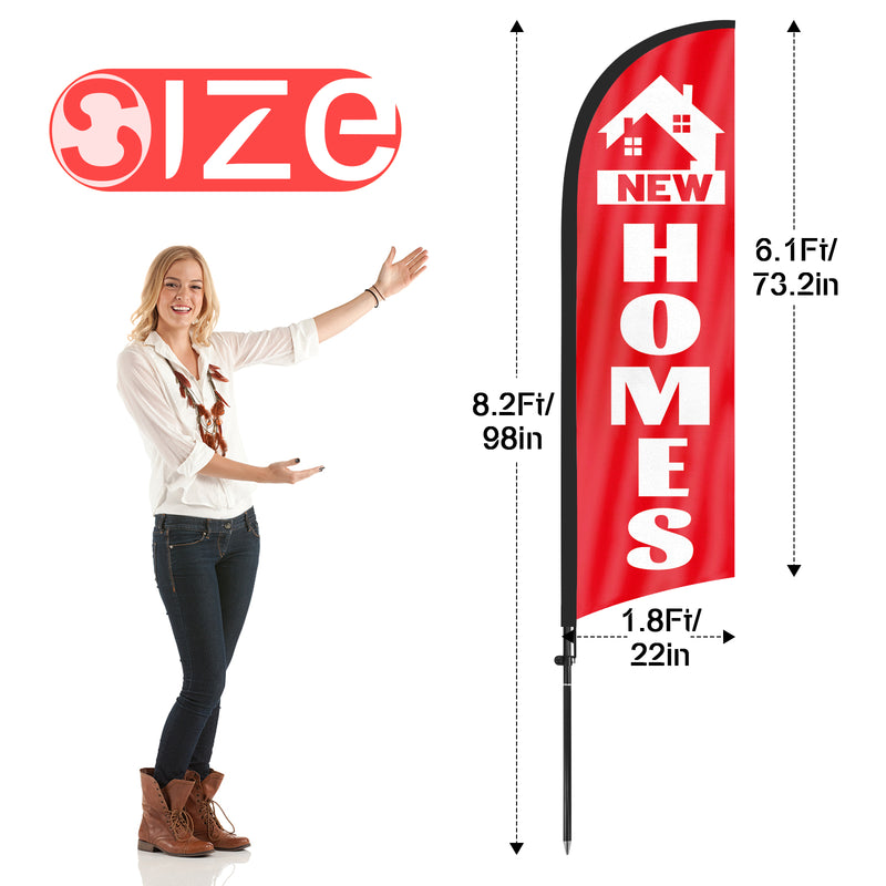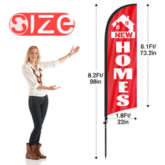 New Home Sign-8FT Red New Homes Feather Flag With Flag Pole and Ground Stake