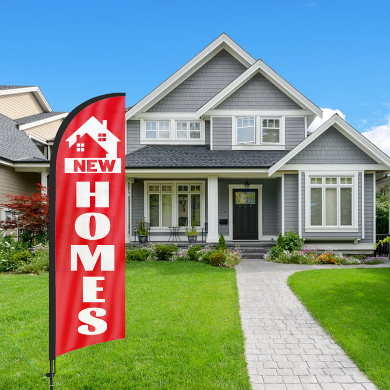 - 【Cost-Effective Advertising】The New Homes sign offer a cost-effective advertising solution compared to other traditional forms of outdoor advertising. This New Homes flag size is (8.2ft/98in) tall and (1.8ft/22in) wide, visible enough from far away, ensures your business stands out from the crowd, grabbing attention and increasing foot traffic.