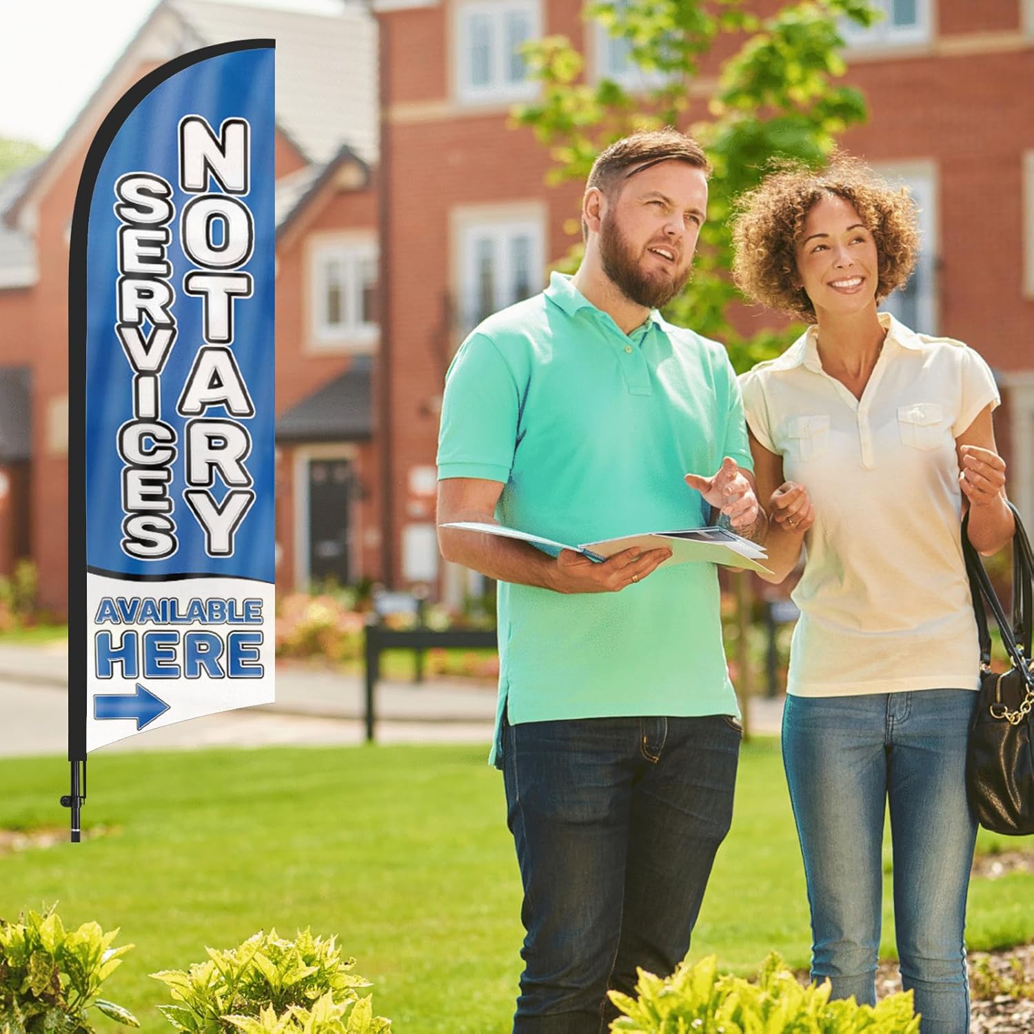 - 【Attention-Grabbing】Notary Services Available Here feather flags stand tall and sway with the wind, making them highly visible and attention-grabbing. The Notary Services Available Here flags’ unique shape and vibrant colors make them stand out in crowded environments, attracting many potential customers from a distance.