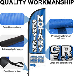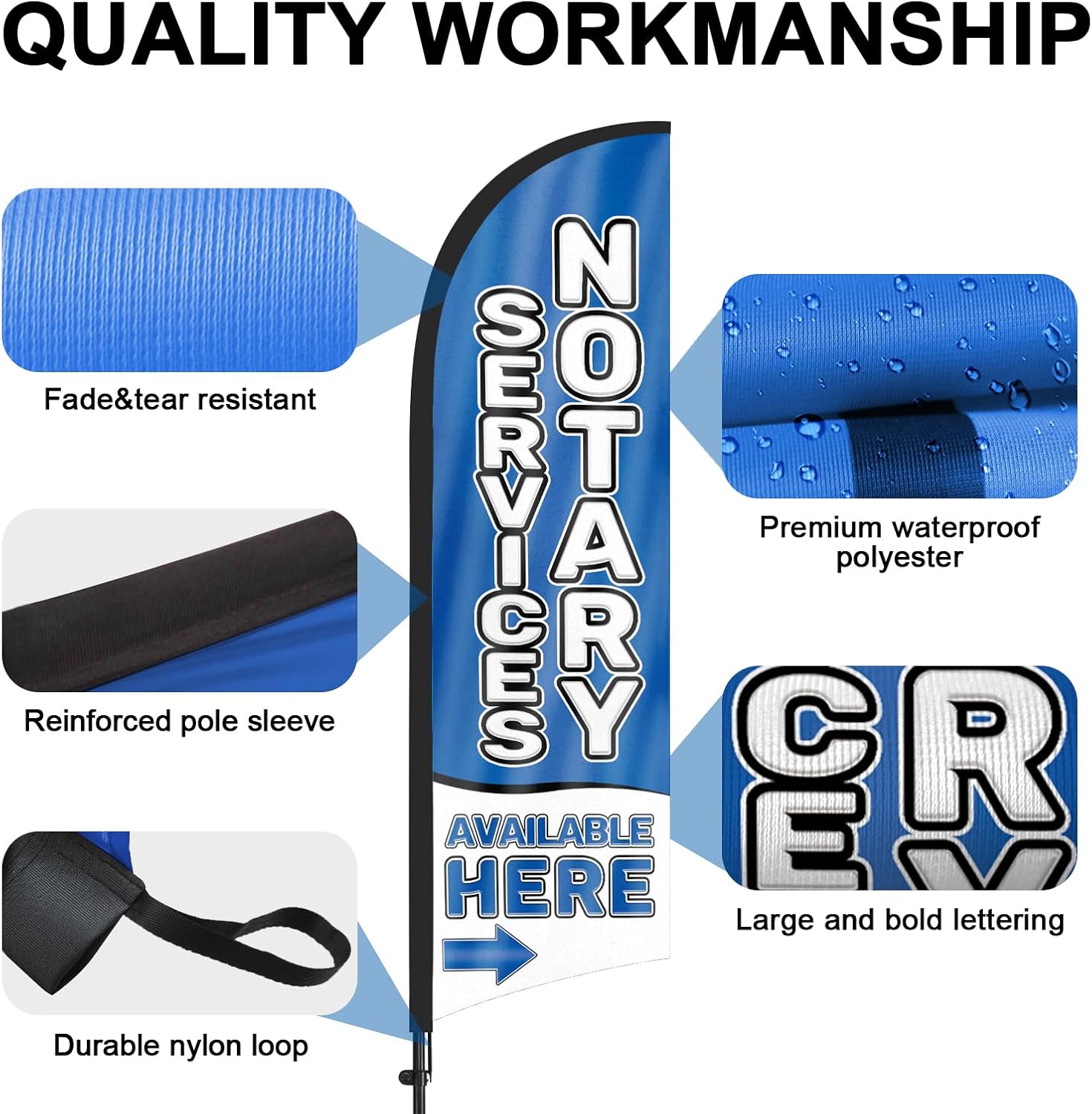 - 【Weather Resistance】These Notary Services Available Here feather flags are designed to withstand various weather conditions, high-quality aluminum and fiberglass pole, tear resistant polyester fabric making it sturdy and heavy-duty to be held up well even in rain, snow, sleet and strong winds.