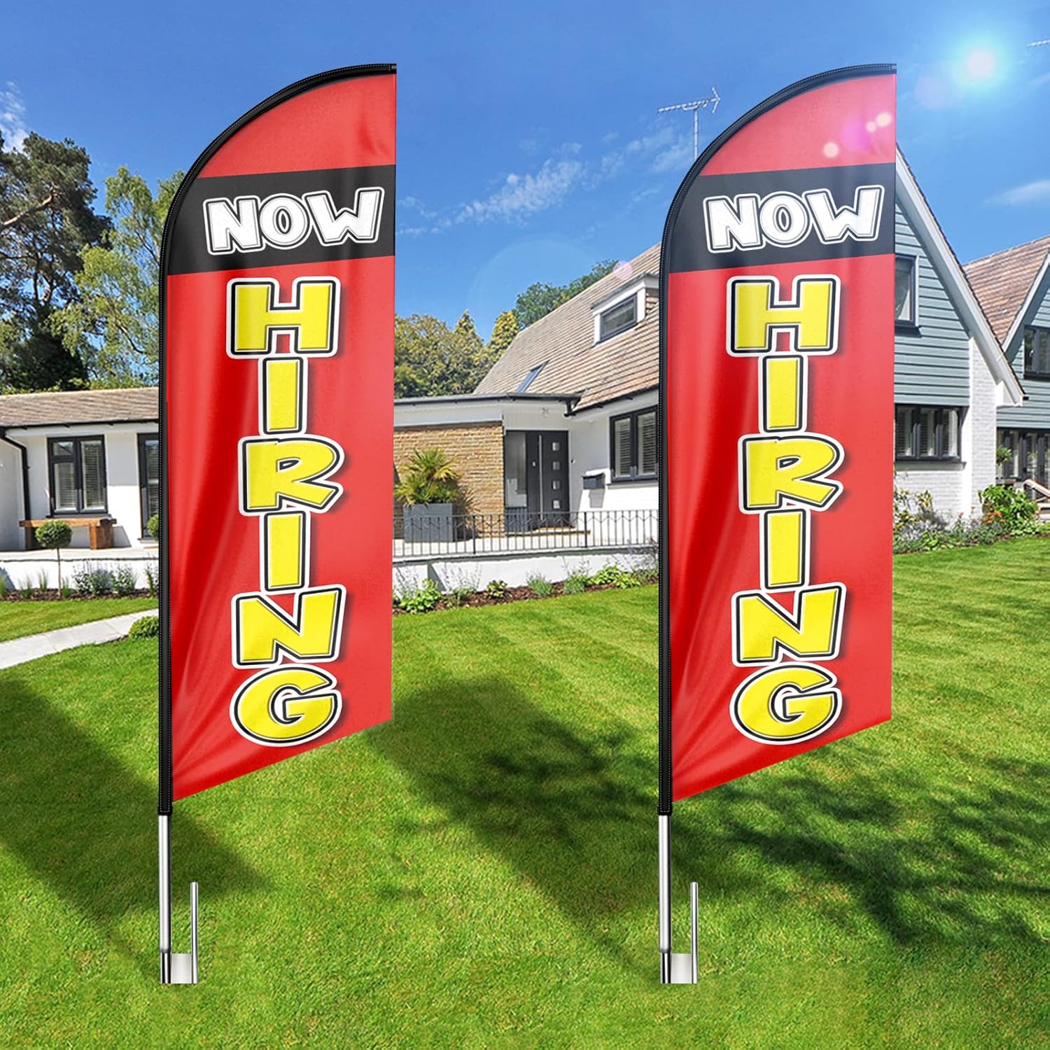- 【Great Eye Catcher】Our now hiring flags will be very eye catching for indoor and outdoor use and make your location or events stand out, the flying feather banner with vibrant colors will grab attention at a distance to attract many new customers to your store.
