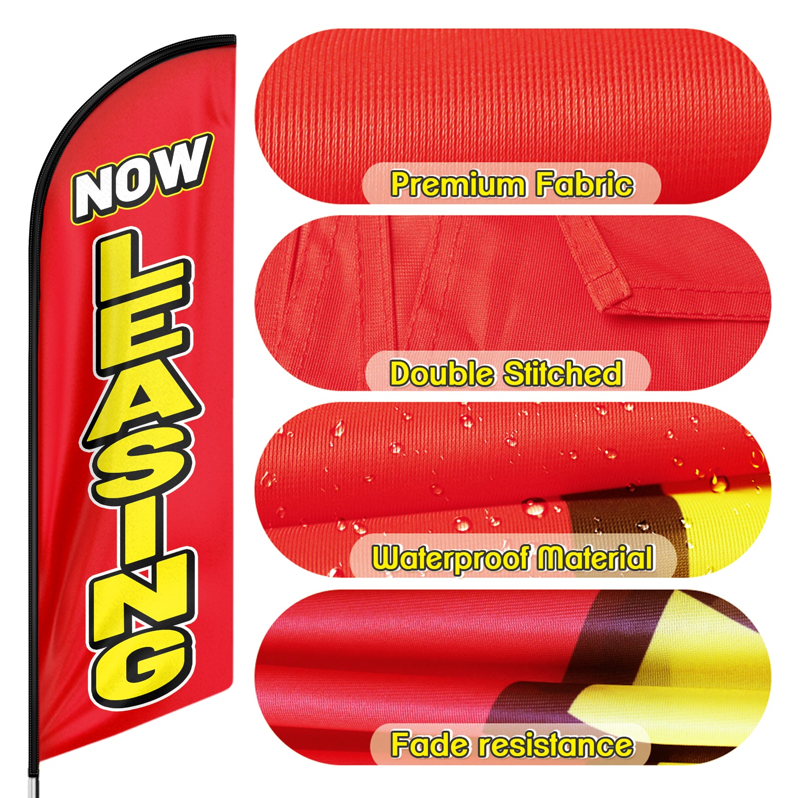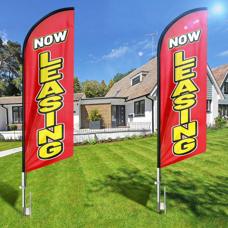 🏠【Great Eye Catcher】Our Now Leasing Feather Flags, designed as Leasing sign, are exceptional eye-catching additions for both indoor and outdoor use, making your location or events stand out. The vibrant flying feather banner with striking colors attracts attention from a distance, drawing in many new customers to your store.