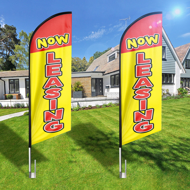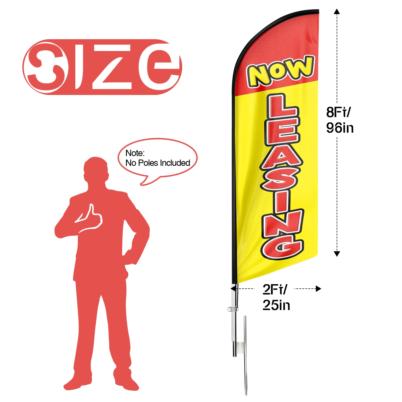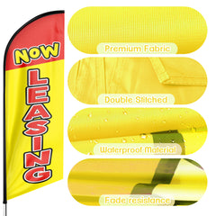 🏠【Great Eye Catcher】Our Now Leasing Feather Flags, designed as Leasing sign, are exceptional eye-catching additions for both indoor and outdoor use, making your location or events stand out. The vibrant flying feather banner with striking colors attracts attention from a distance, drawing in many new customers to your store.
