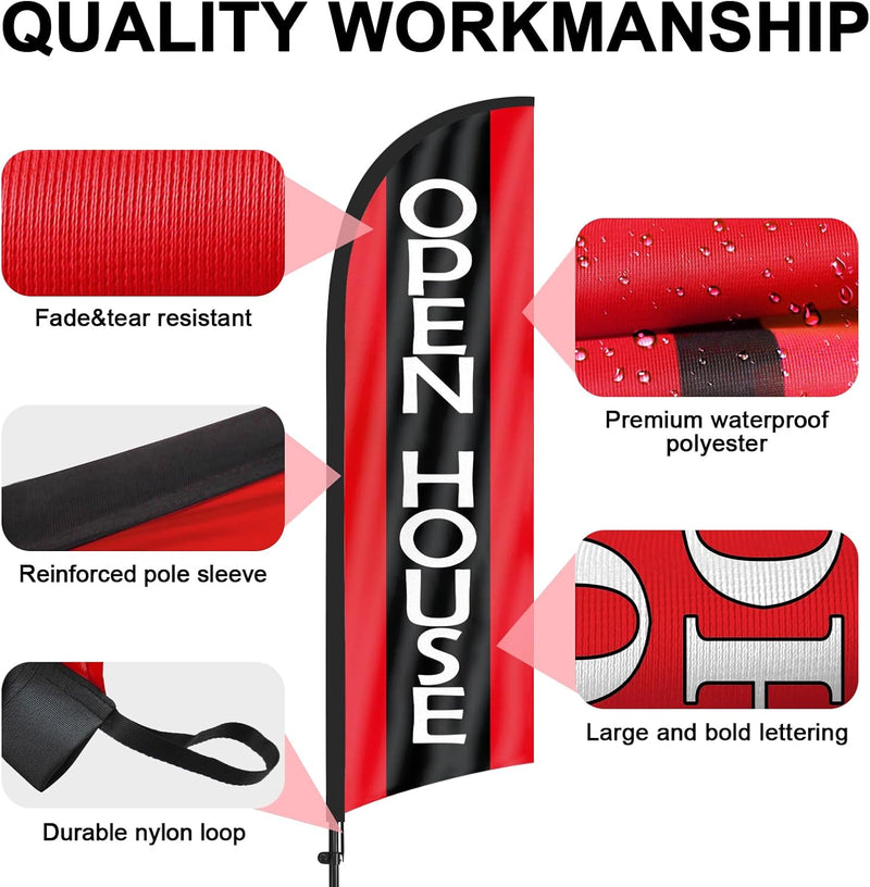 - 【Attention-Grabbing】Our open house sign stand tall and sway with the wind, making them highly visible and attention-grabbing. The Open house flags’ unique shape and vibrant colors make them stand out in crowded environments, attracting many potential customers from a distance.