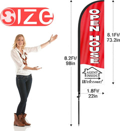 - 【Cost-Effective Advertising】The open house banner offer a cost-effective advertising solution compared to other traditional forms of outdoor advertising. This open house flag size is (8.2ft/98in) tall and (1.8ft/22in) wide, visible enough from far away, ensures your business stands out from the crowd, grabbing attention and increasing foot traffic.