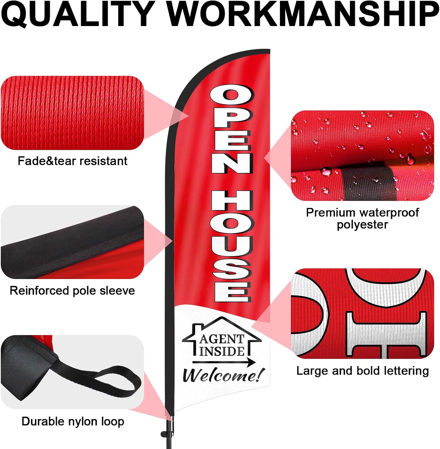 - 【Attention-Grabbing】Our Open house sign agents stand tall and sway with the wind, making them highly visible and attention-grabbing. The Open house flags’ unique shape and vibrant colors make them stand out in crowded environments, attracting many potential customers from a distance.
