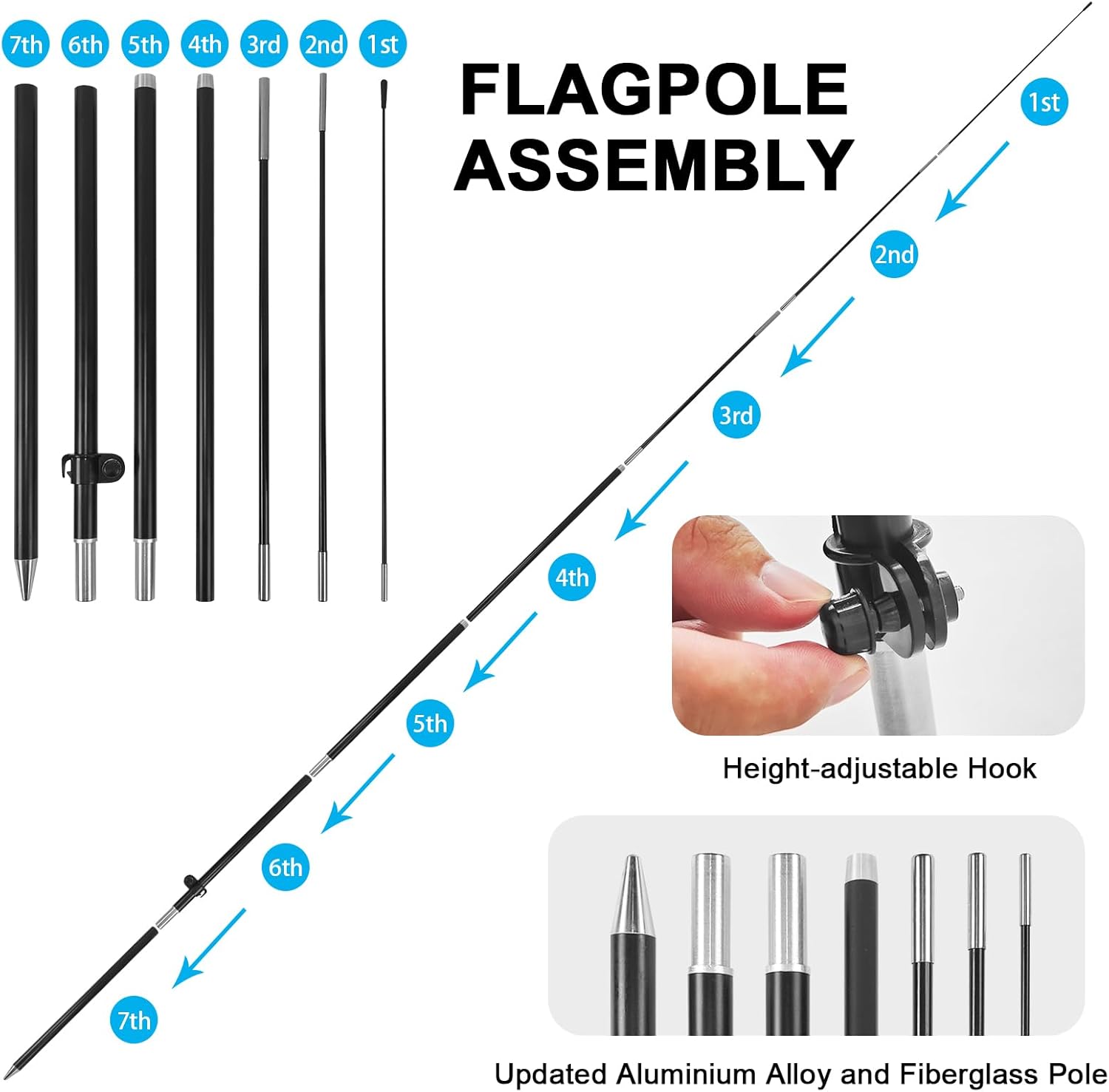 - 【Portable and Easy Setup】This Pet Grooming feather flag pole kit includes 1 swooper flag+6 rods+1 ground stake and comes with 1 storage bag. They can be quickly set up and taken down, requiring minimal effort.