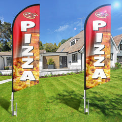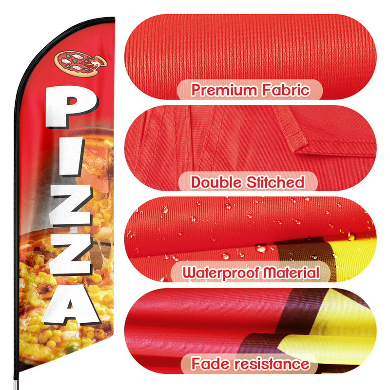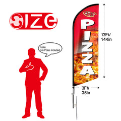 - 【Excellent Advertisement Tool】The Pizza feather flag size is very large (8Ft/96in x 2 Ft/25in) visible enough from far away, you may put the feather banner up in front of your business, at the entry or on the sidewalk.