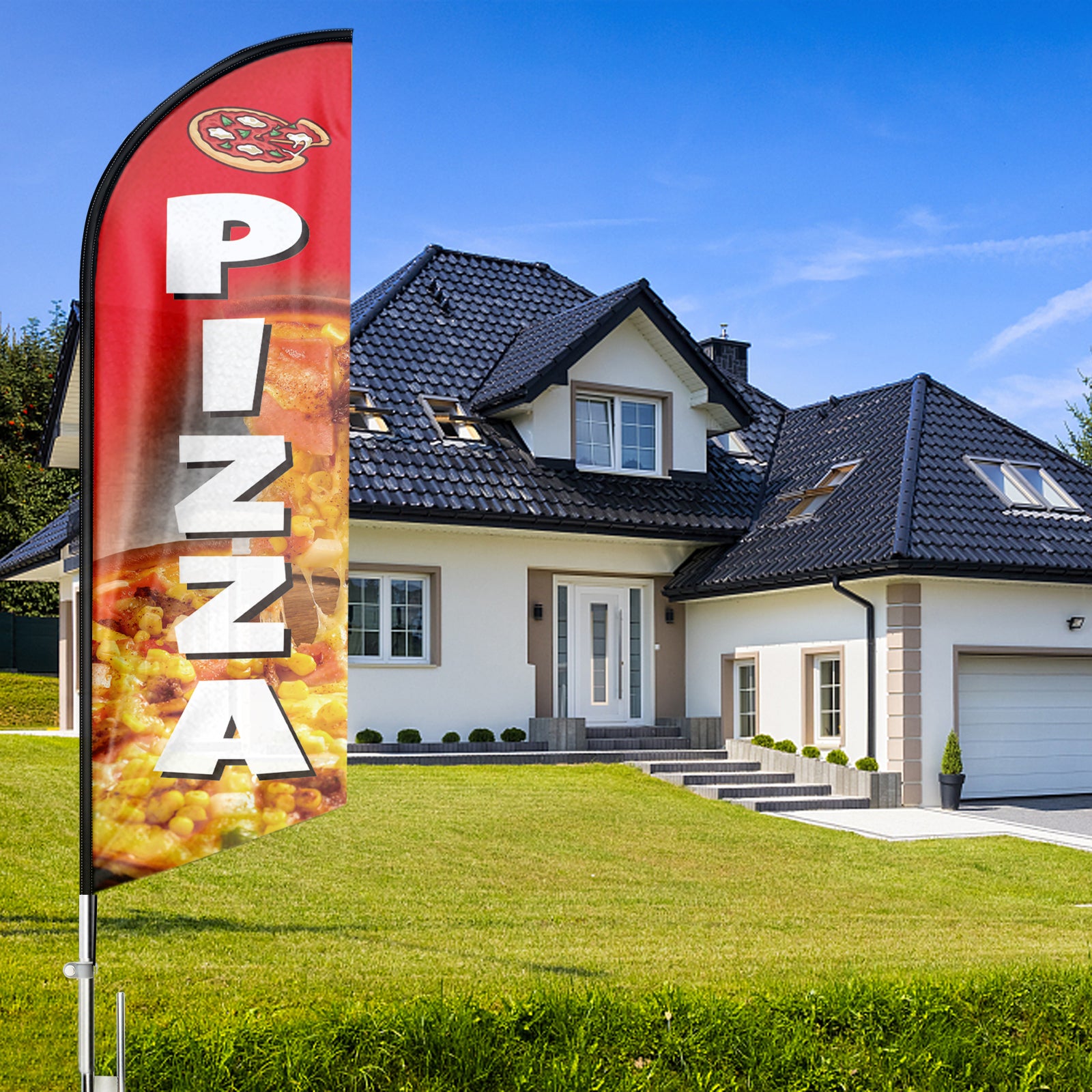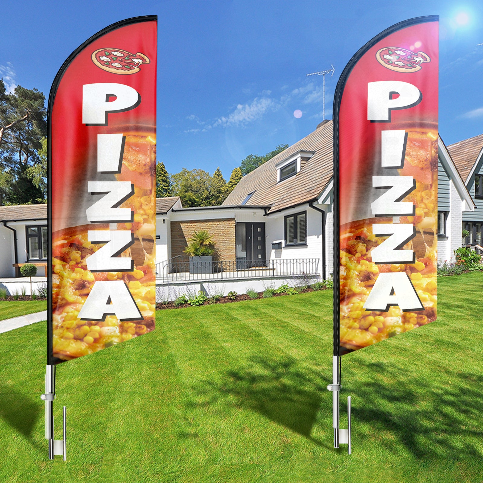 - 【Cost-effective】A must-have and cost-effective way to increase traffic to business. Put the stake in the ground or other stand bases to display the Pizza flag sign daily.