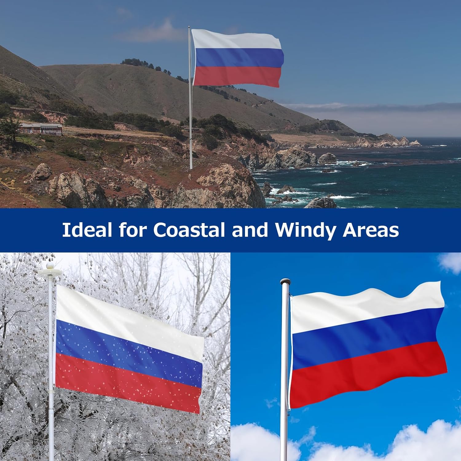 - 【400D Heavy-Duty Anti-Tear Flag】Crafted from premium 400D polyester, this flag is thicker, heavier, and more durable than standard flags. It’s waterproof, UV-resistant, and features a smooth, deluxe finish. The fly end is reinforced with a canvas header and four rows of lock stitching, providing exceptional resistance to fraying and tearing—perfect for coastal or high-wind areas.