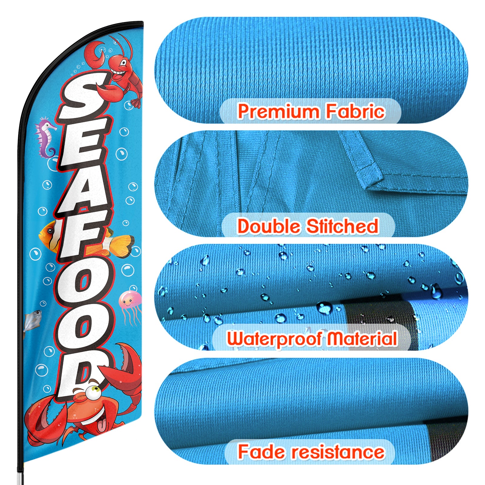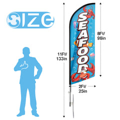 - 🏠【Excellent Advertisement Tool】The Seafood feather banner size is very large (11ft/ 340cm) tall and (2.1 ft/ 64cm) wide, visible enough from far away, you may put the feather banner up in front of your business, at the entry or on the sidewalk, really a must-have and cost-effective way to increase traffic to business.