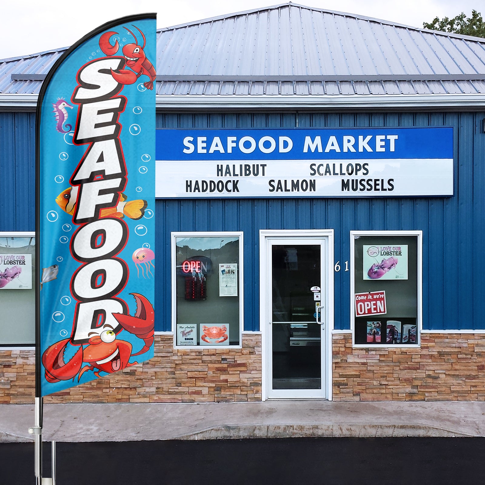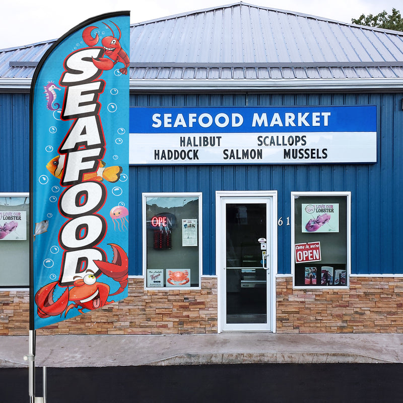 Seafood Sign-FSFLAG Seafood Swooper Flag Feather Flag Pole Kit