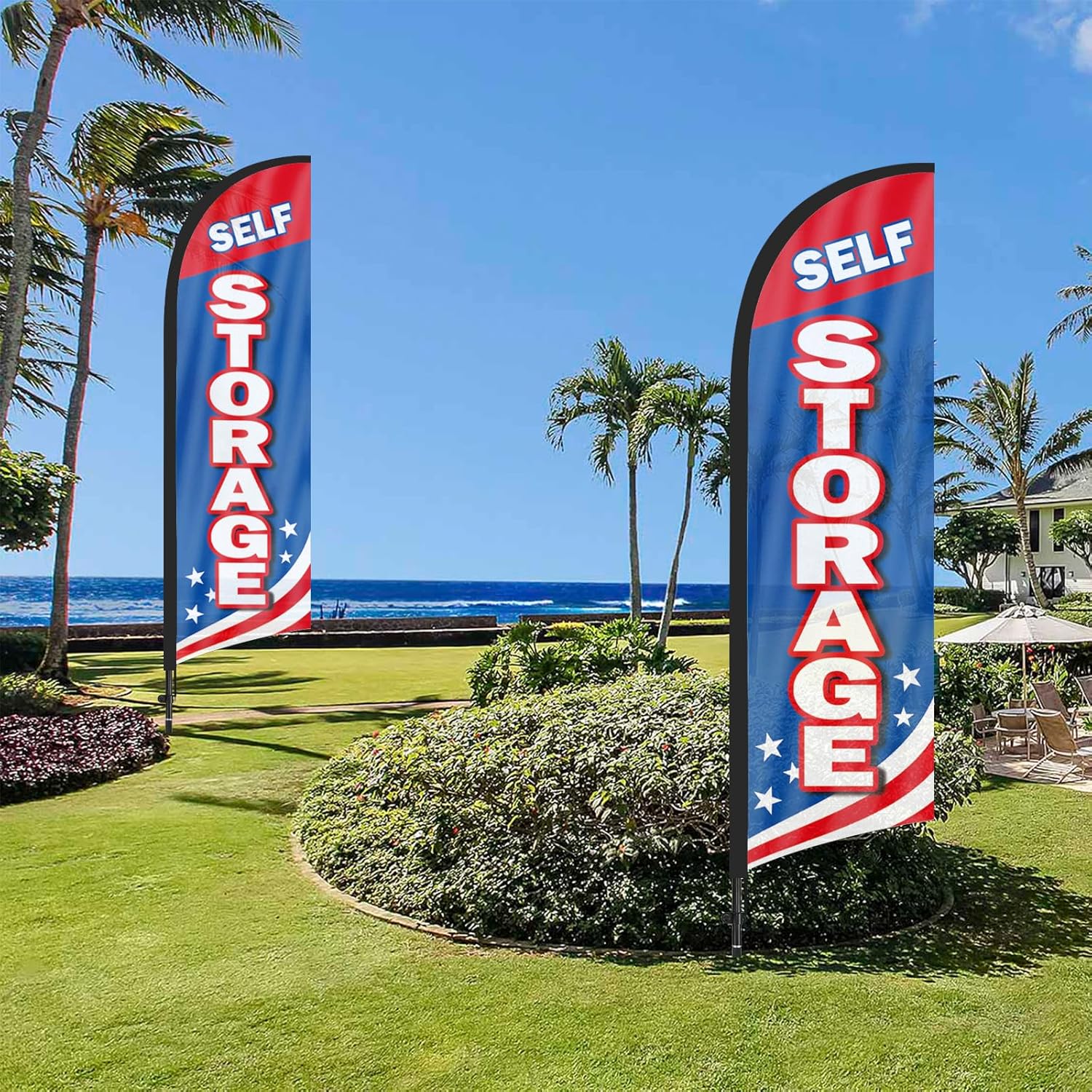 - 【Attention-Grabbing】Self Storage feather flags stand tall and sway with the wind, making them highly visible and attention-grabbing. The Self Storage flags’ unique shape and vibrant colors make them stand out in crowded environments, attracting many potential customers from a distance.