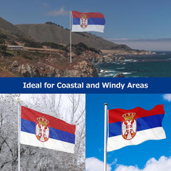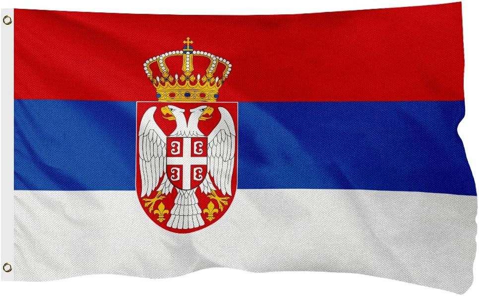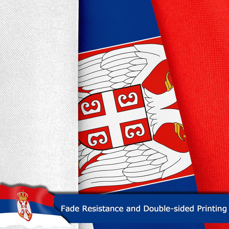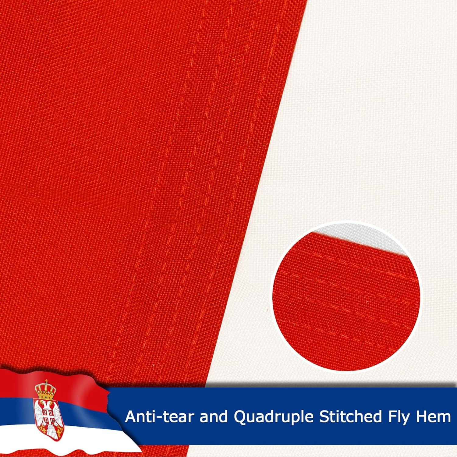 Serbia Serbian Flag for Outside, 400D Heavy Duty Polyester, Double-Sided Printing, Quadruple Stitched Fly Hem, Fade Resistant, 2 Brass Grommets