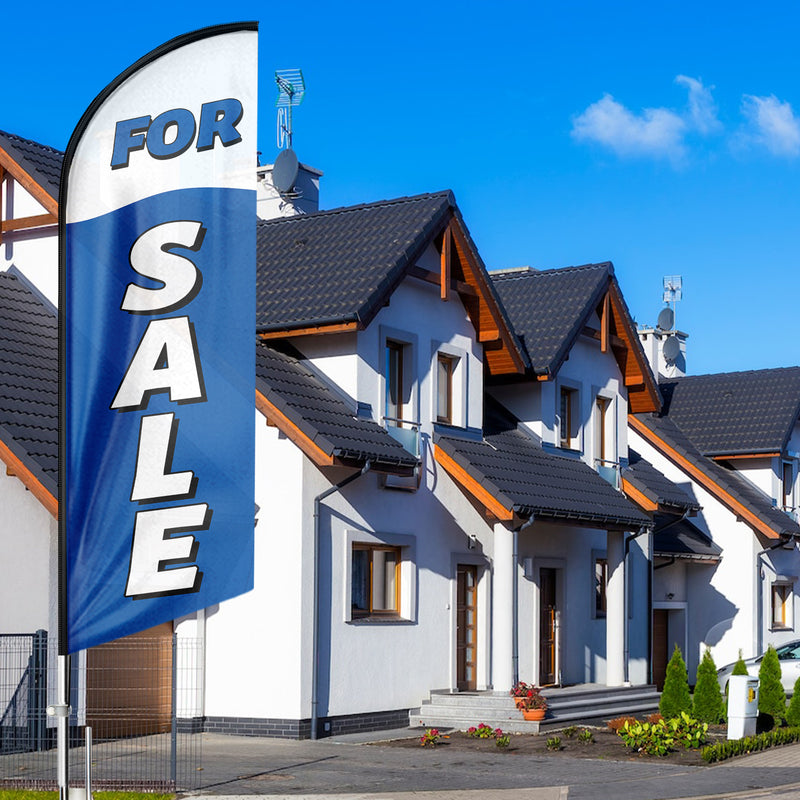 - 【Cost-effective】A must-have and cost-effective way to increase traffic to business. Put the stake in the ground or other stand bases to display the For Sale flag sign daily.