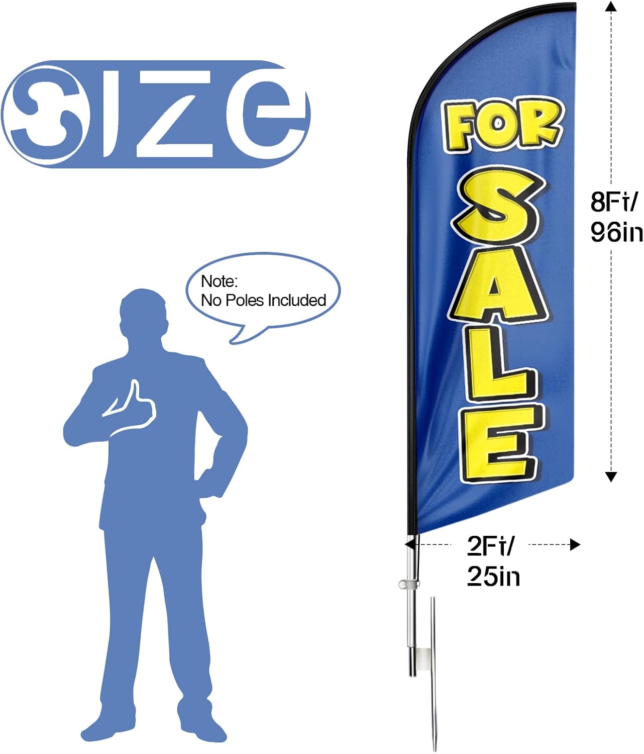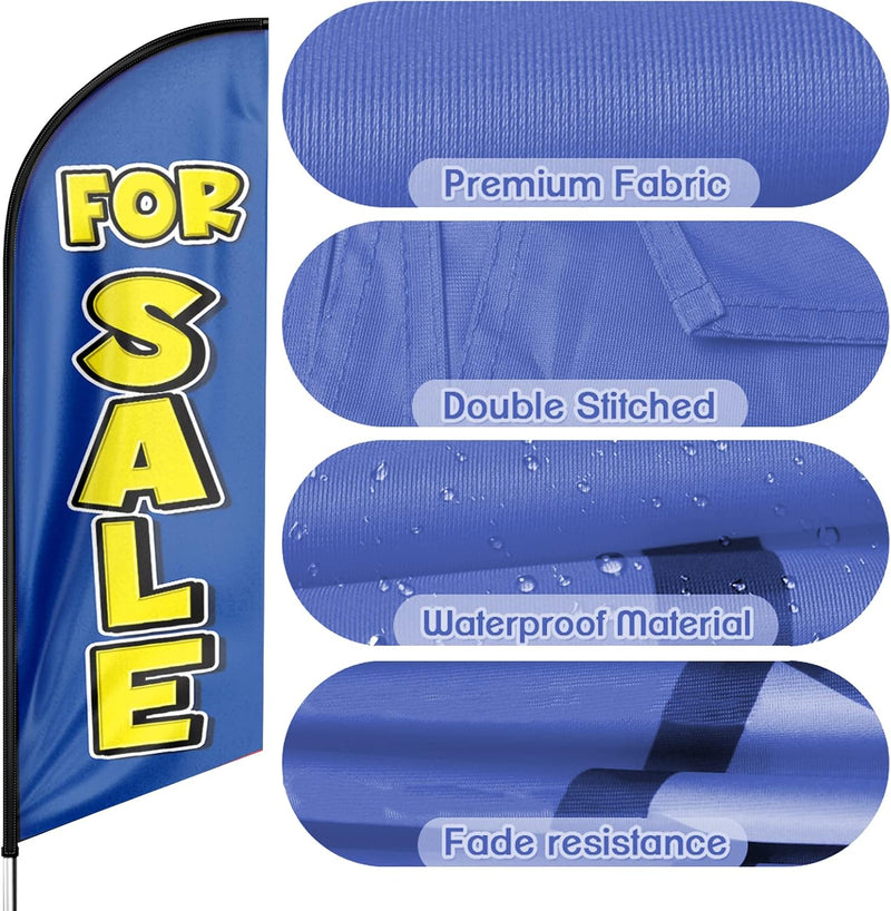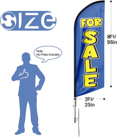 - 【Excellent Advertisement Tool】The For Sale feather flag size is very large (8Ft/96in x 2 Ft/25in) visible enough from far away, you may put the feather banner up in front of your business, at the entry or on the sidewalk.