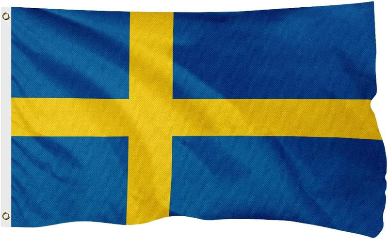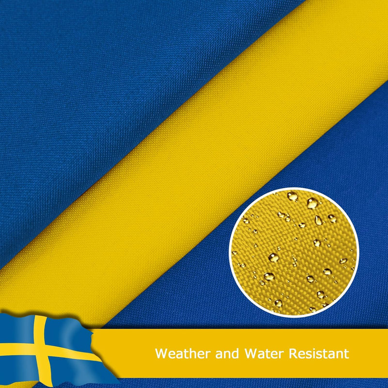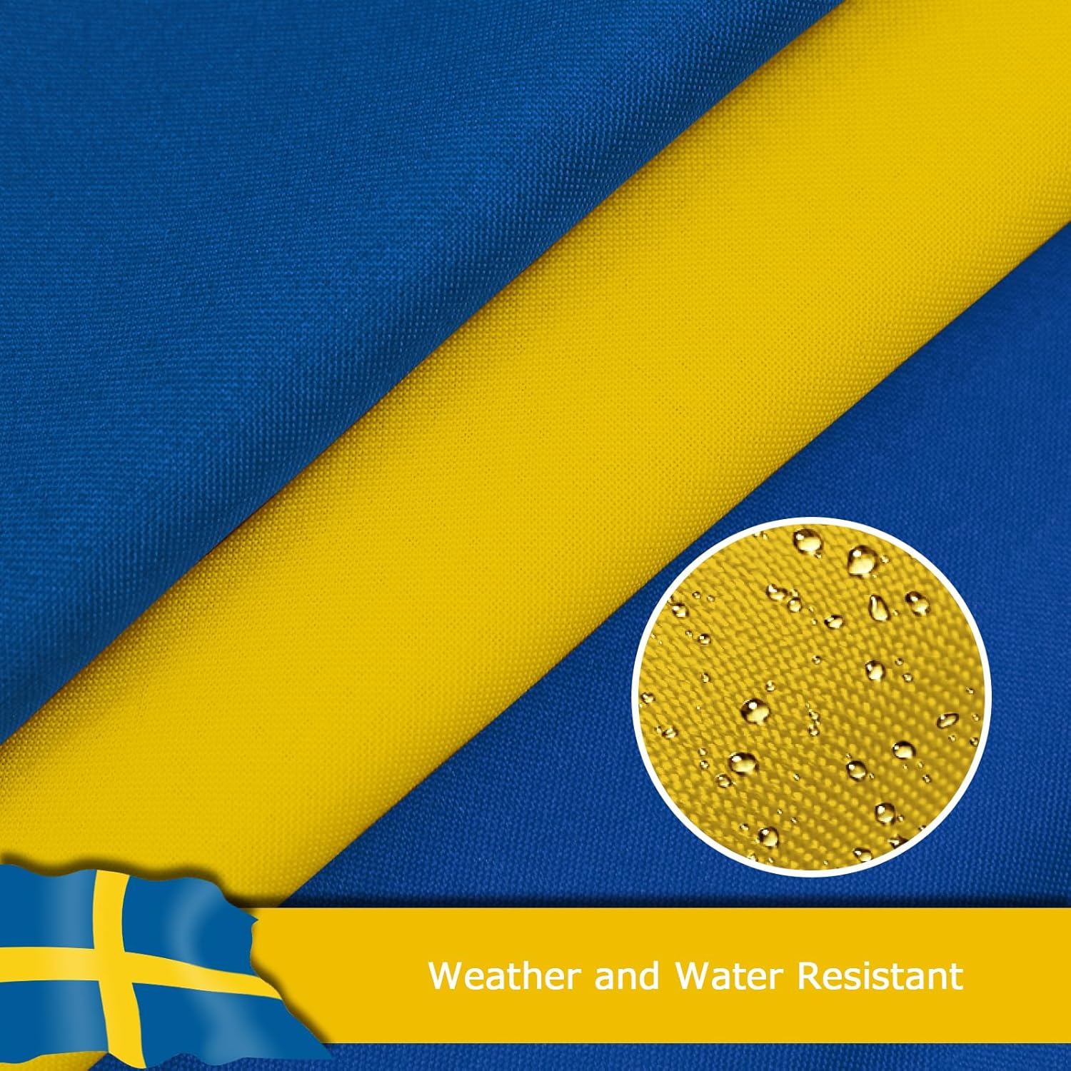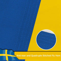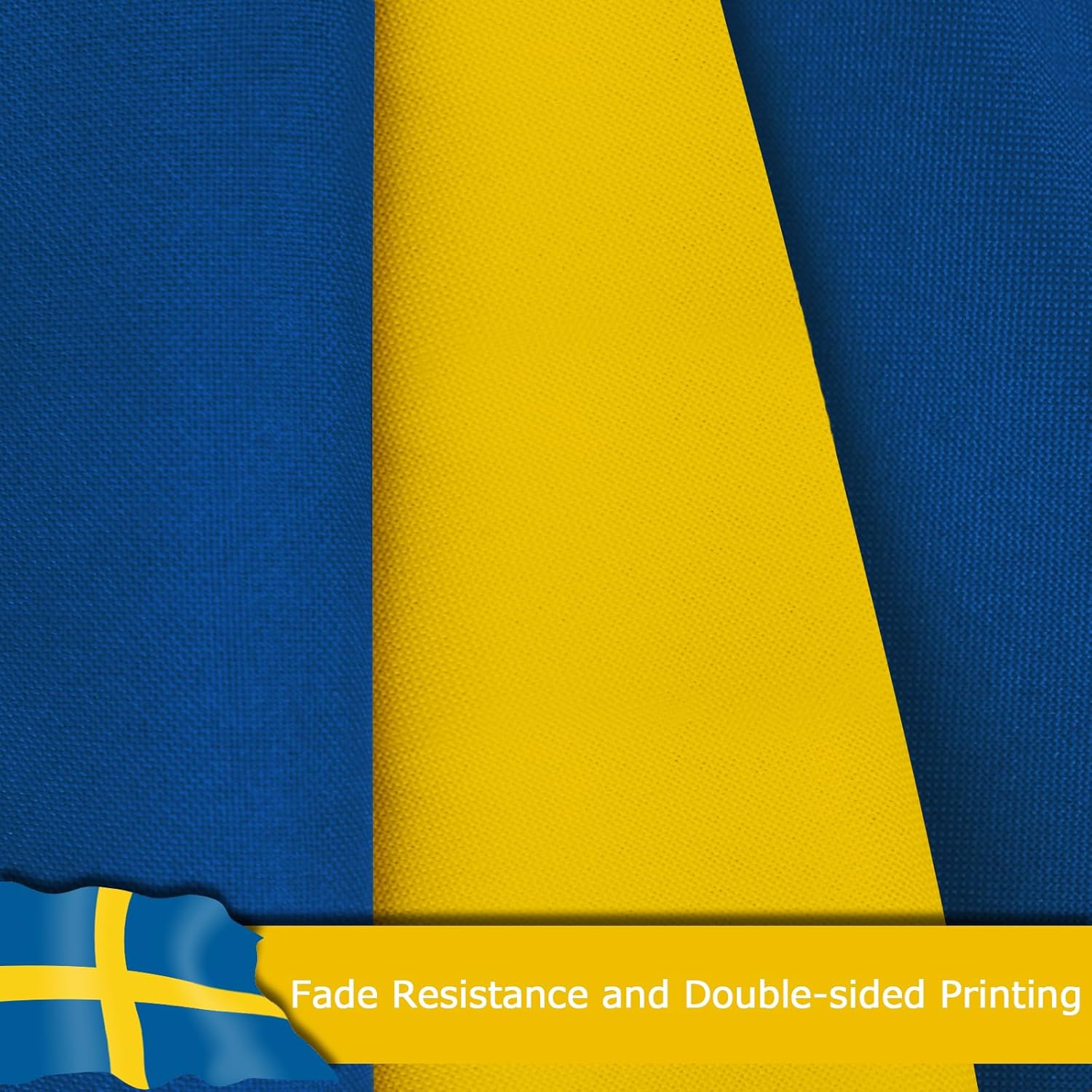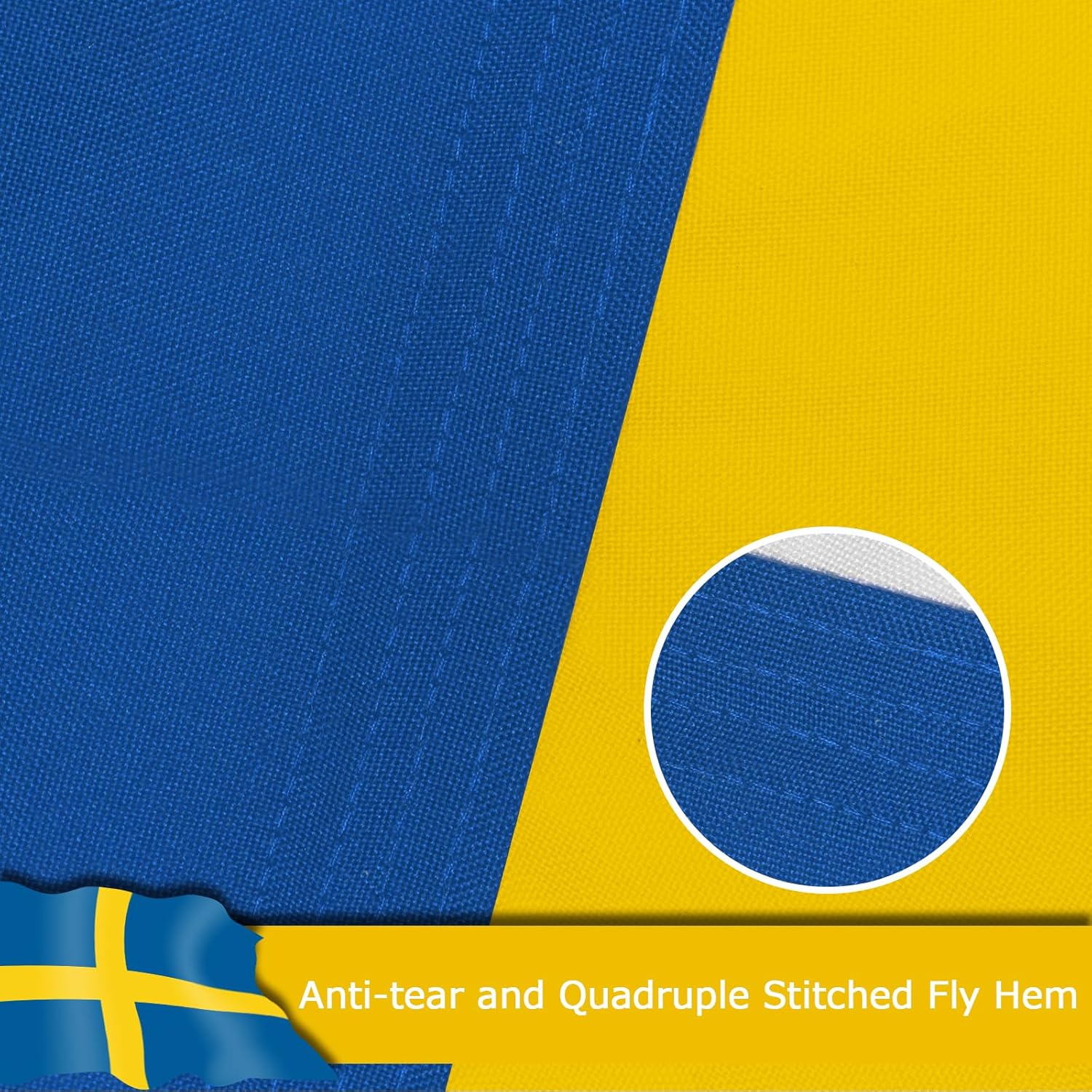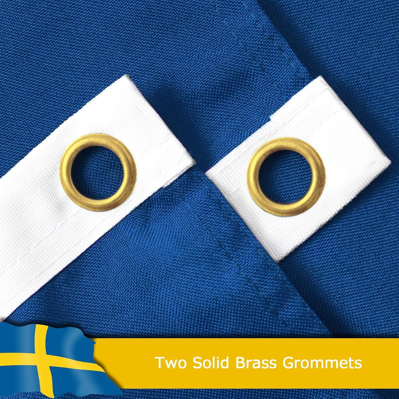 Sweden Swedish Flag for Outside, 400D Heavy Duty Polyester, Double-Sided Printing, Quadruple Stitched Fly Hem, Fade Resistant, 2 Brass Grommets