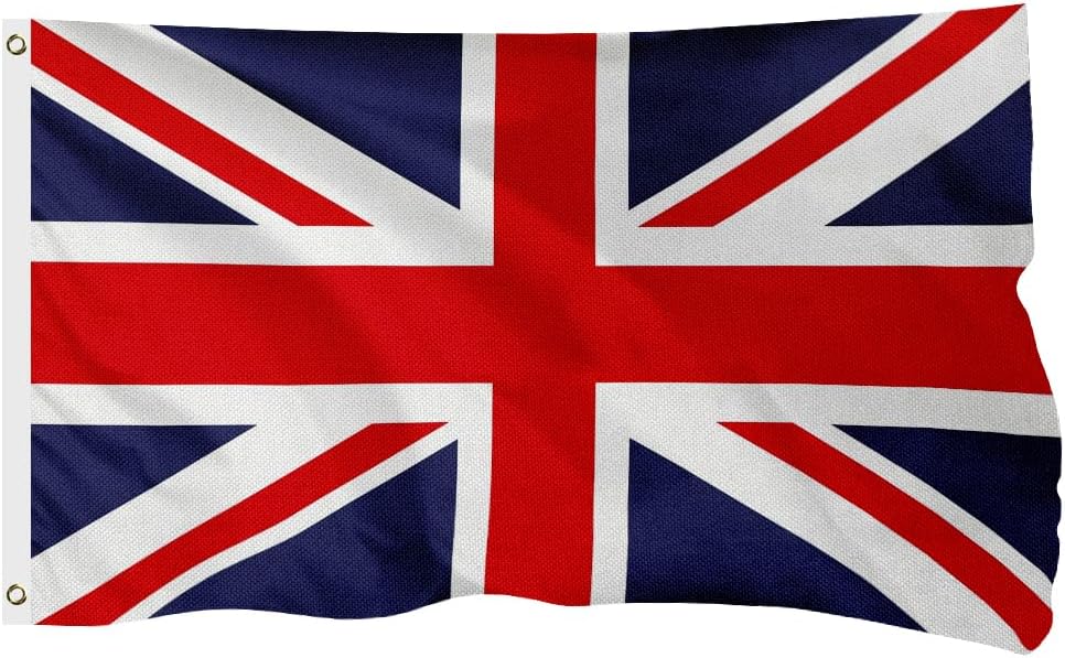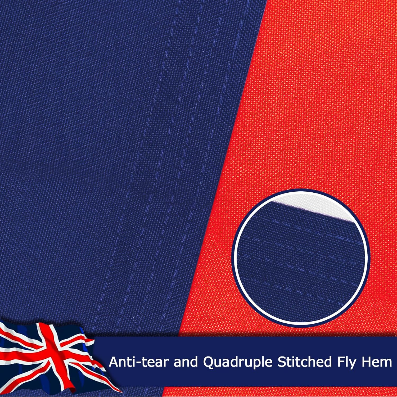UK United Kingdom Flag for Outside, 400D Heavy Duty Polyester, Double-Sided Printing, Quadruple Stitched Fly Hem, Fade Resistant, 2 Brass Grommets