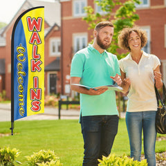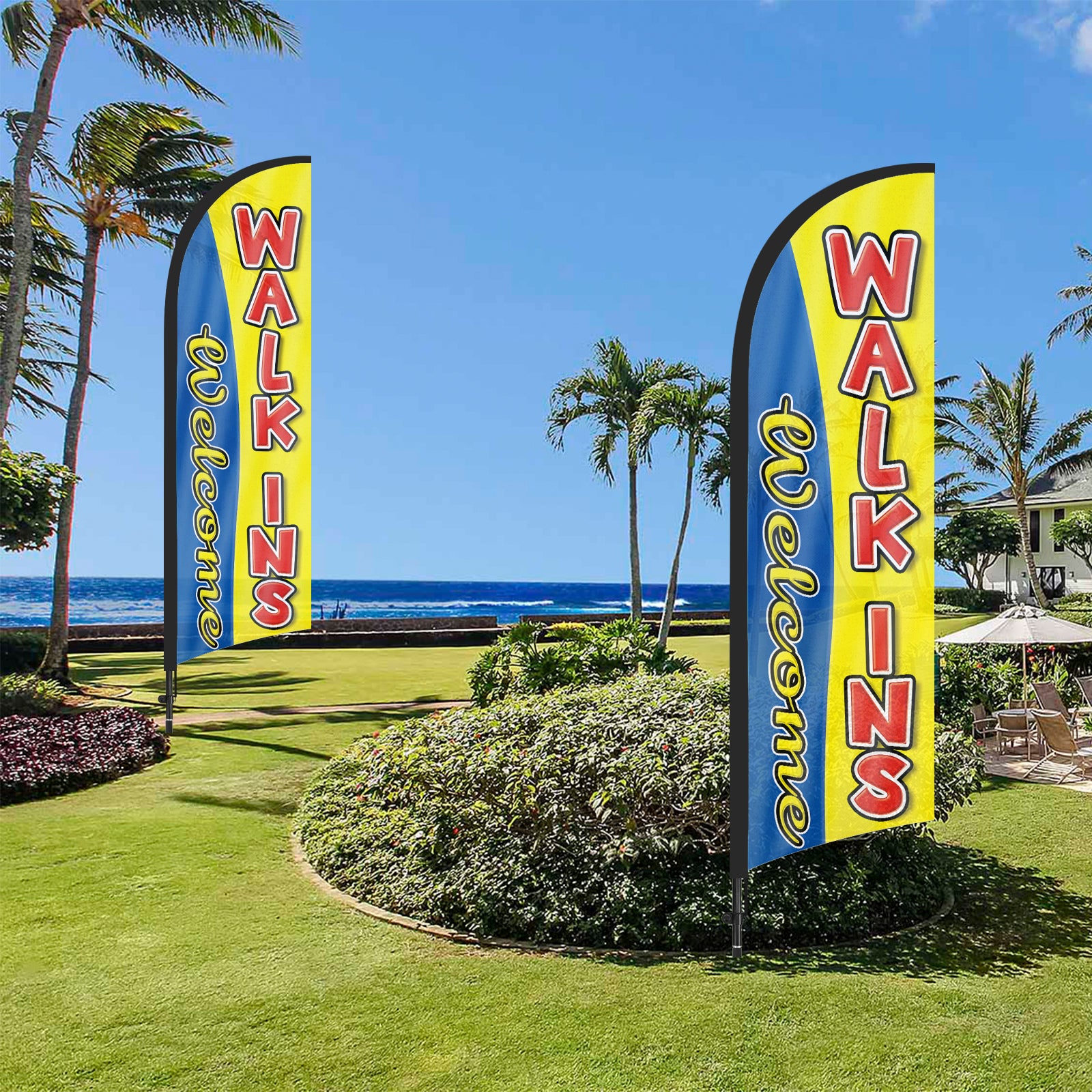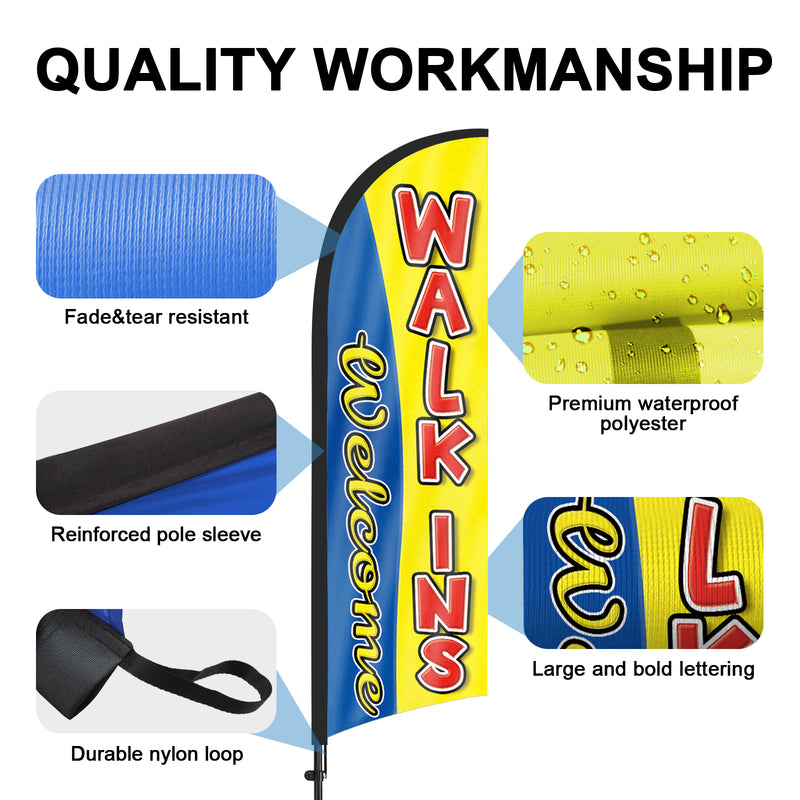 - 【Cost-Effective Advertising】The Walk Ins Welcome sign offer a cost-effective advertising solution compared to other traditional forms of outdoor advertising. This Walk Ins Welcome flag size is (8.2ft/98in) tall and (1.8ft/22in) wide, visible enough from far away, ensures your business stands out from the crowd, grabbing attention and increasing foot traffic.