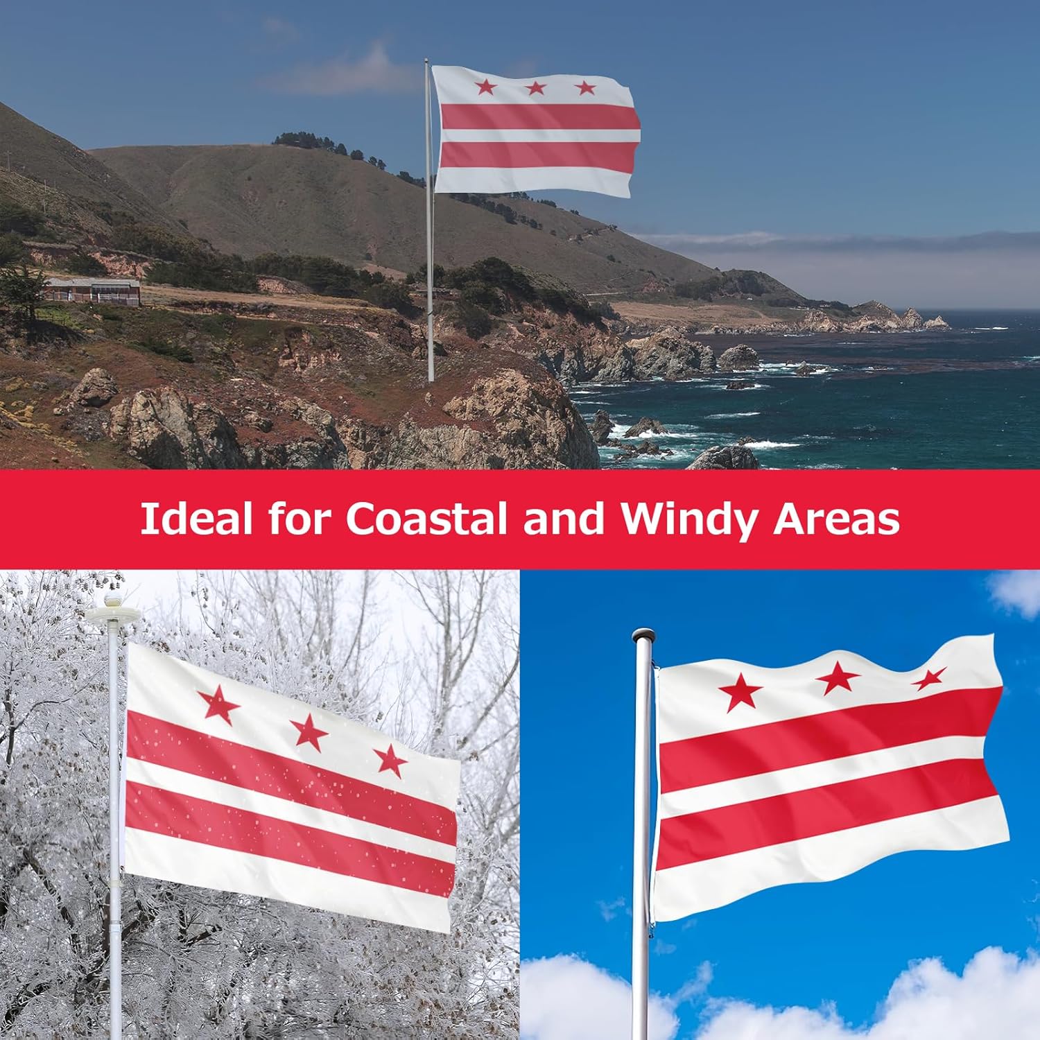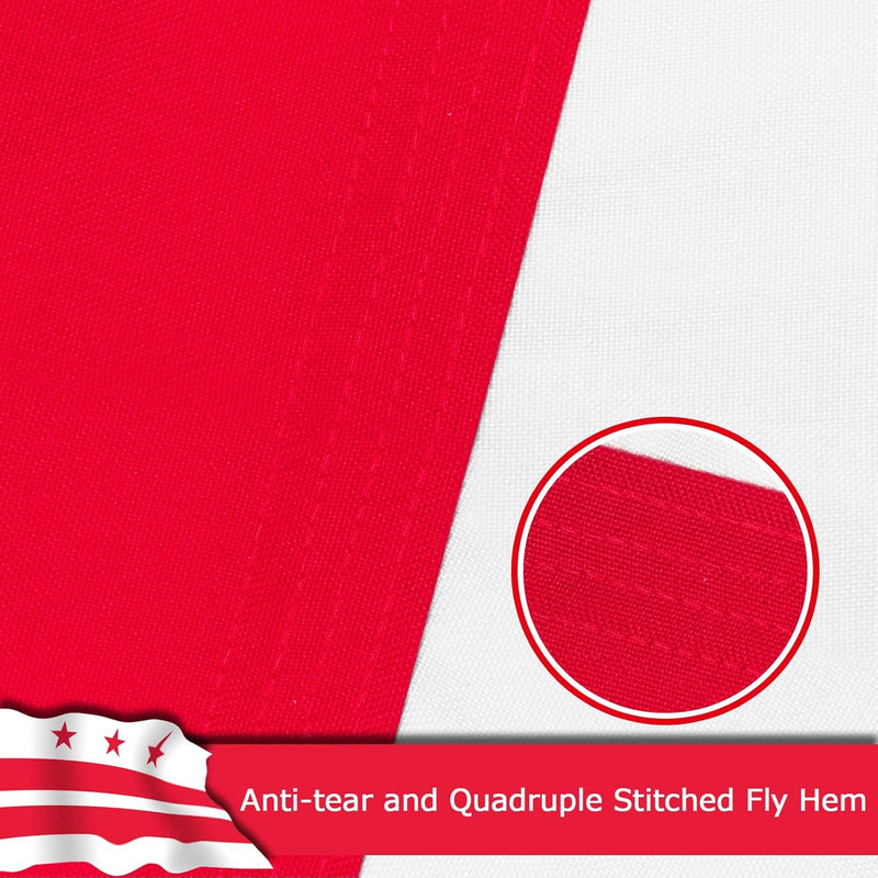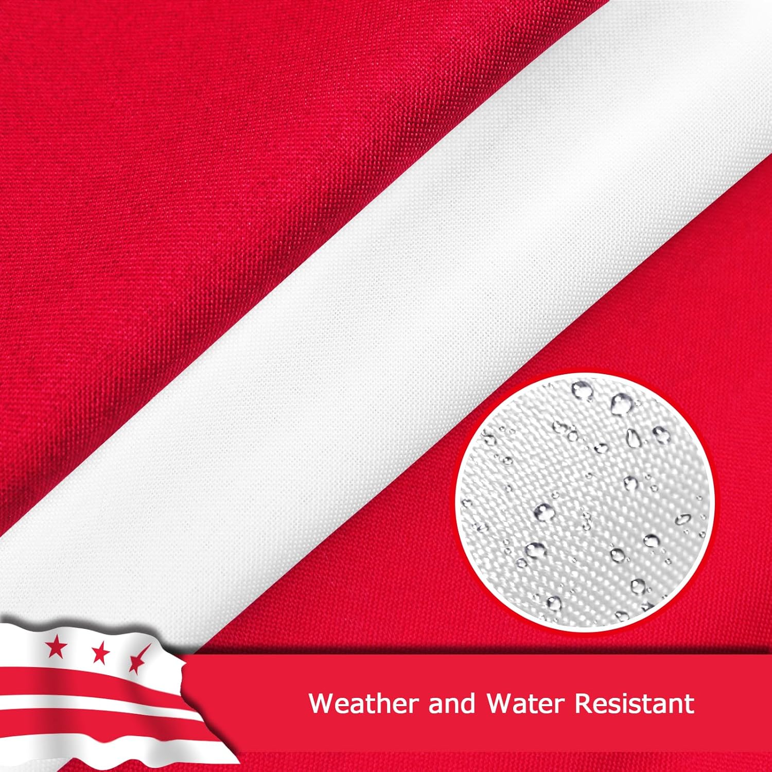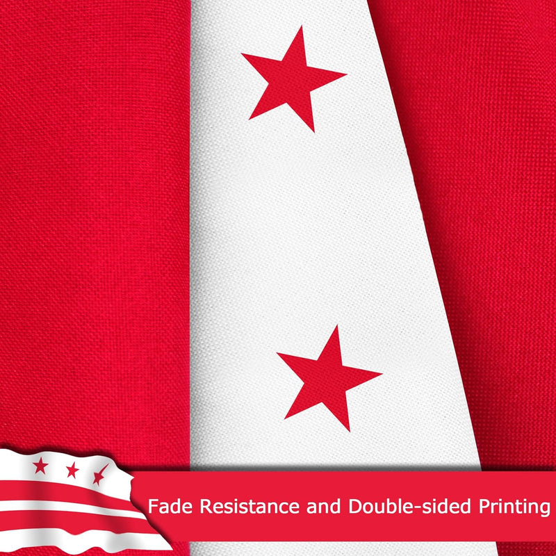Washington DC City Flag for Outside, 400D Heavy Duty Polyester, Double-Sided Printing, Quadruple Stitched Fly Hem, Fade Resistant, 2 Brass Grommets